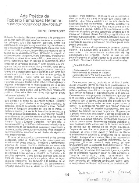 Arte poética de Roberto Fernández Retamar [artículo] Irene Rostagno.