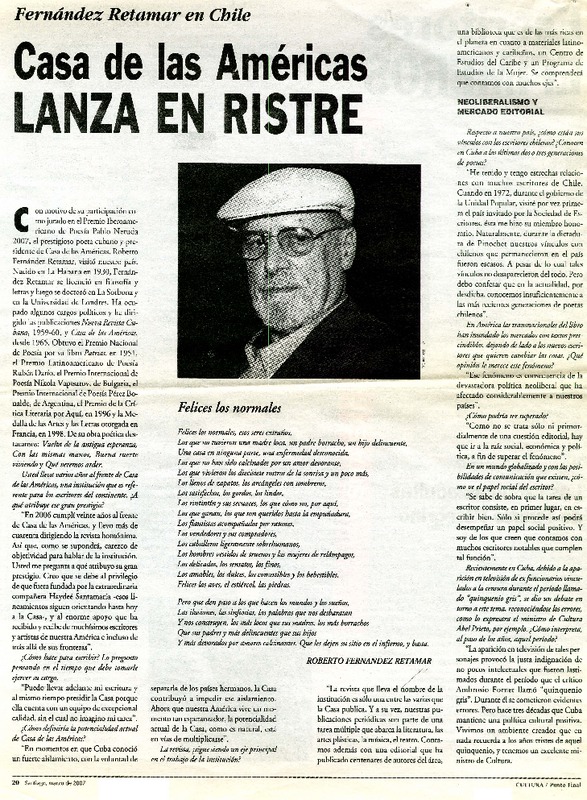 casa de las Américas lanza en ristre (entrevista) [artículo] Alejandro Lavquez.