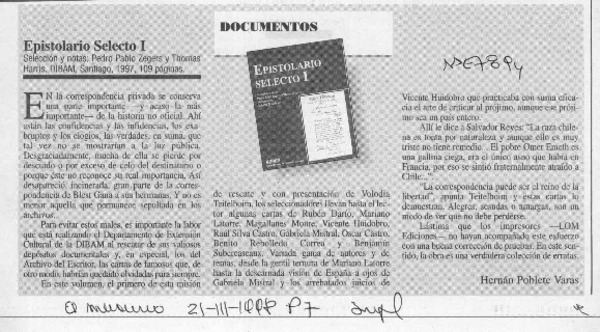 Epistolario selecto 1 [artículo] Hernán Poblete Varas.
