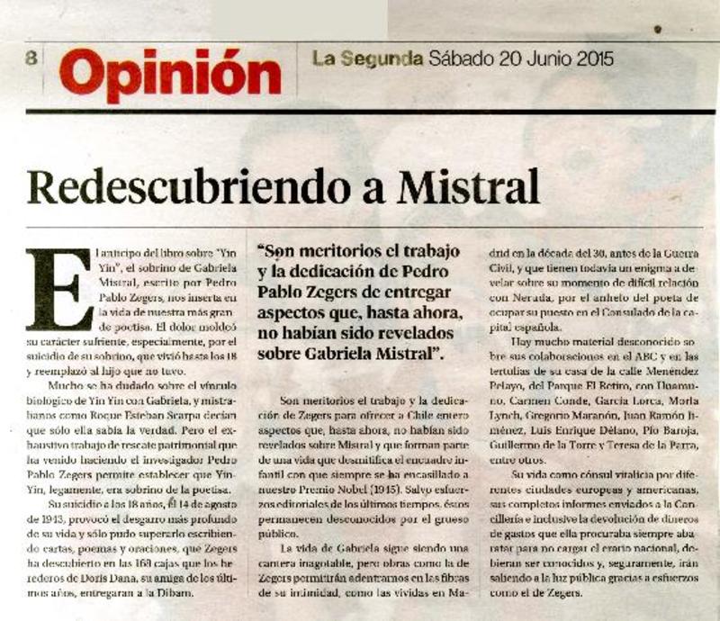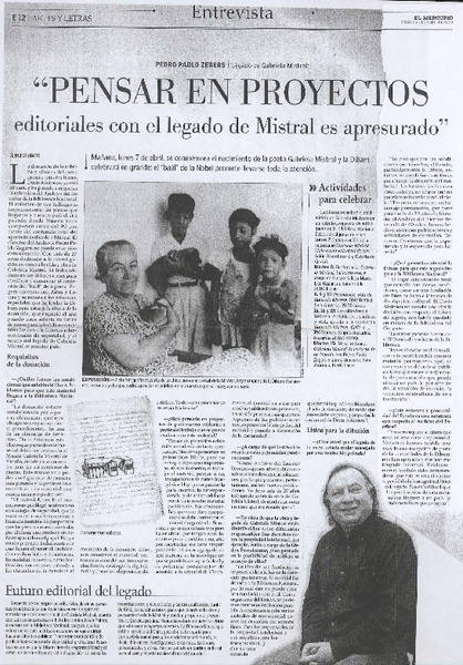 Autores chilenos - Mistral, Gabriela - Entrevista - Zegers B., Pedro Pablo