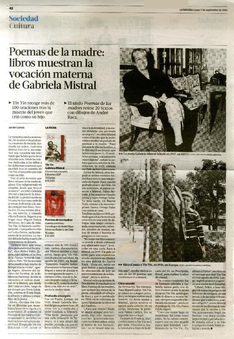 Poemas de la madre: libros muestran la vocación materna de Gabriela Mistral [artículo] Javier García.