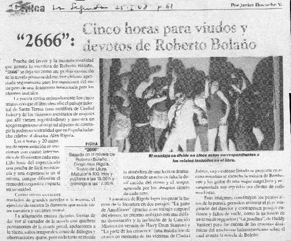 2666, el gran retorno de Robrto Bolaño al teatro [artículo] Pedro Bahamondes Ch.