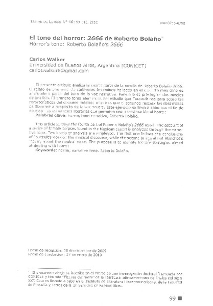 El tono del horror [artículo] Carlos Walker.