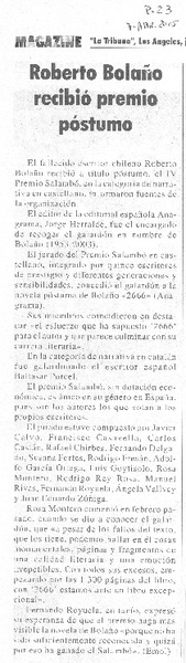 Roberto Bolaño recibió premio póstumo [artículo]