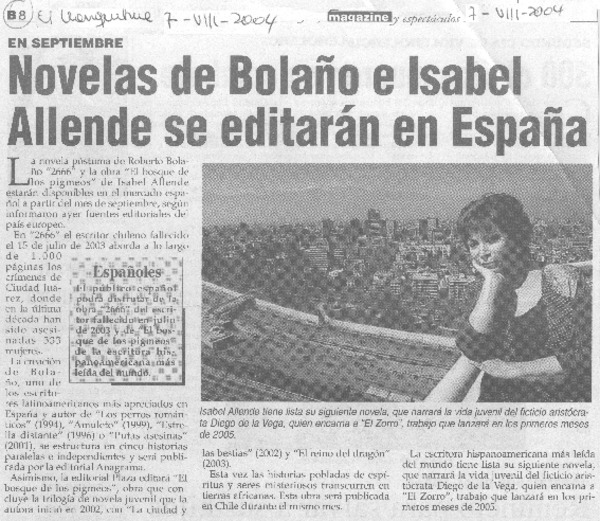 Novelas de Bolaño e Isabel Allende se editarán en España. [artículo]