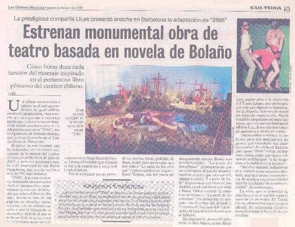Estrenan monumental obra de teatro basada en novela de Bolaño [artículo].