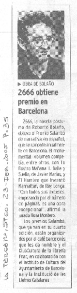 2666 obtiene premio en España [artículo]