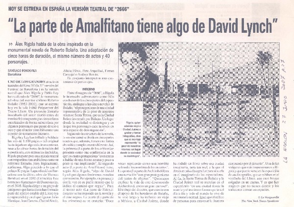"La parte de Amalfitano tiene de David Lynch" [artículo]Santiago, Fondevila.