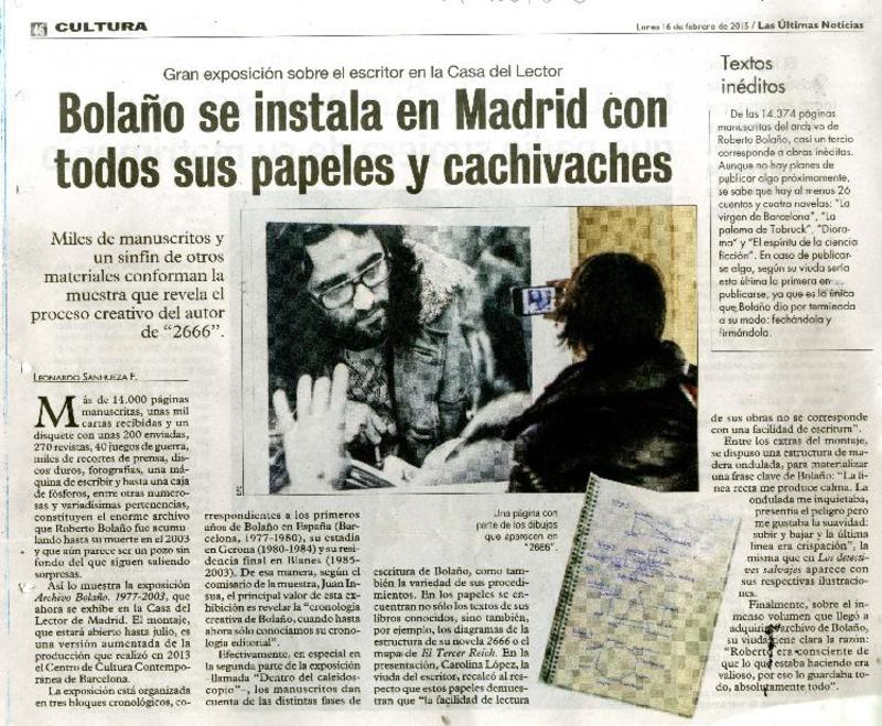 Bolaño se instala en Madrid con todos sus papeles y cachivaches [artículo] Leonardo Sanhueza.