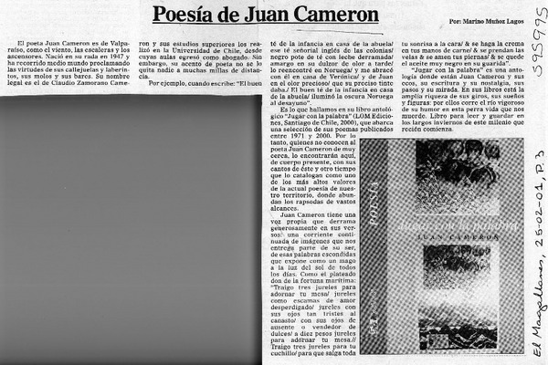 Poesía de Juan Cameron [artículo] Marino Muñoz Lagos