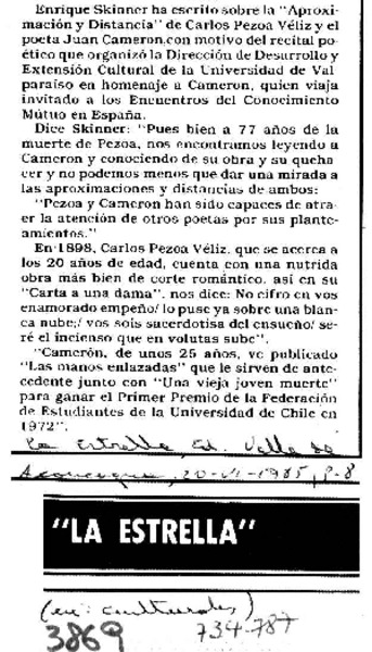 Autores chilenos - Pezoa Véliz, Carlos - Cameron, Juan - Aproximación y distancia