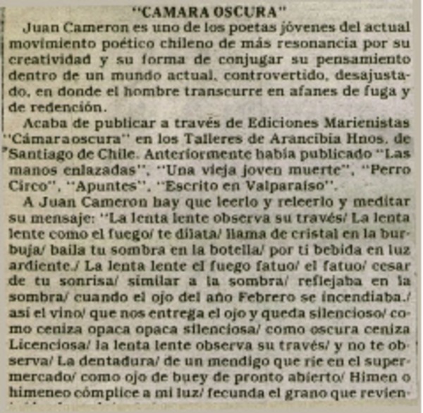 Autores chilenos - Cameron, Juan - Cámara oscura