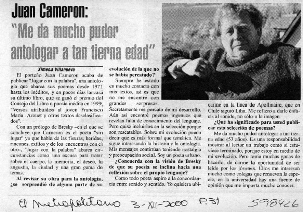 Juan Cameron, "me da mucho pudor antologar a tan tierna edad" [artículo] Ximena Villanueva