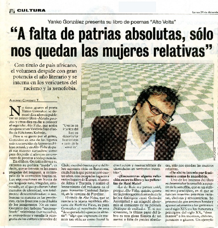 Autores chilenos - Entrevistas - González Cangas, Yanko - Alto Volta