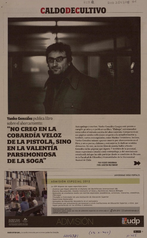 Autores chilenos - Entrevistas - González Cangas, Yanko - Elabuga