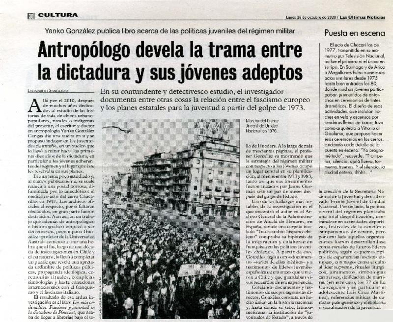 Antropólogo devela la trama entre la dictadura y sus jóvenes adeptos [artículo] Leonardo Sanhueza.