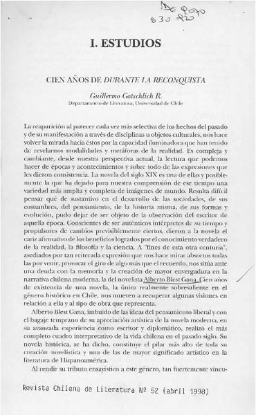 Cien años de "Durante la reconquista" [artículo] Guillermo Gotschlich R.
