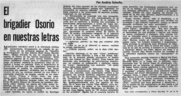 El brigadier Osorio en nuestras letras [artículo] Andrés Sabella.