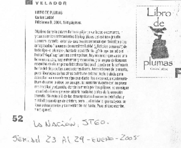 Autores chilenos - Labbé, Carlos - Libro de plumas