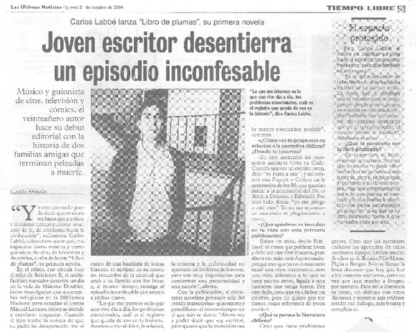 Joven escritor desentierra un episodio inconfesable [artículo] Claudia Apablaza.