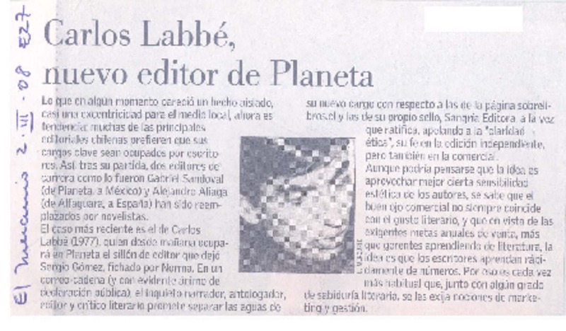 Carlos Labbé, nuevo editor de Planeta [artículo].
