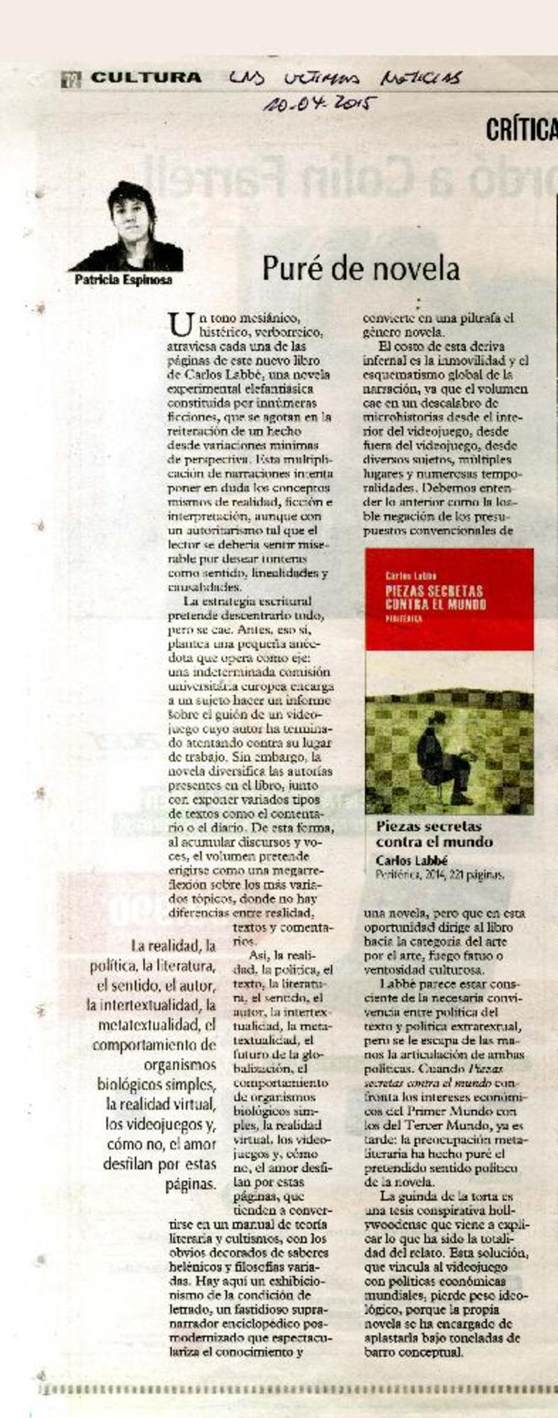 Puré de novela [artículo] Patricia Espinosa.