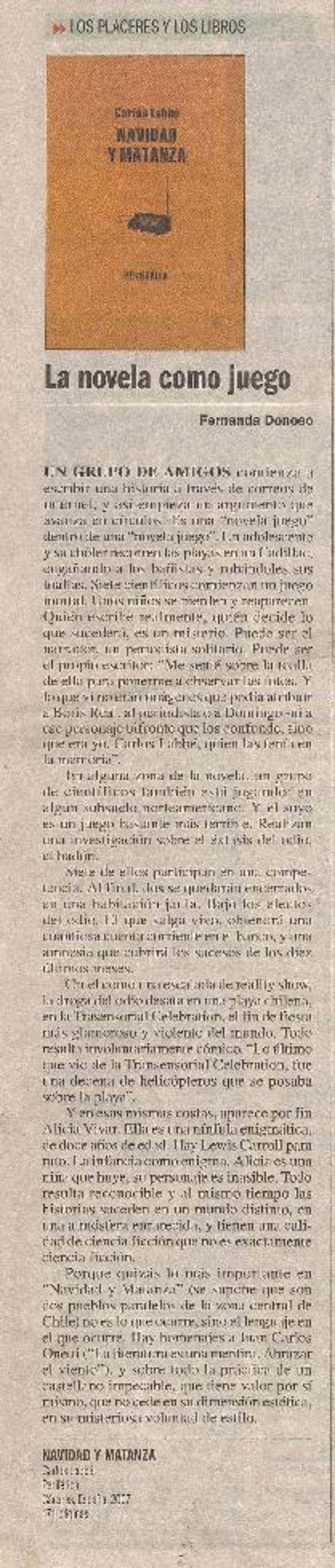 La novela como juego [artículo] Fernanda Donoso.
