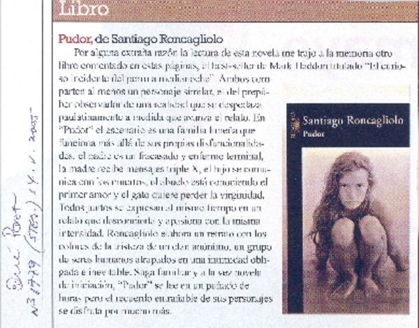 Roncagliolo, Santiago - Pudor - Autores internacionales
