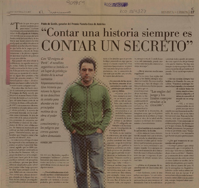 "contar una historia siempre es contar un secreto" (entrevista) [artículo] Patricio Jara.