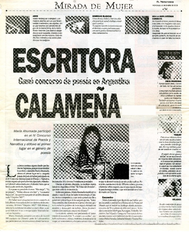 Escritora calameña ganó concurso de poesía en Argentina [artículo].