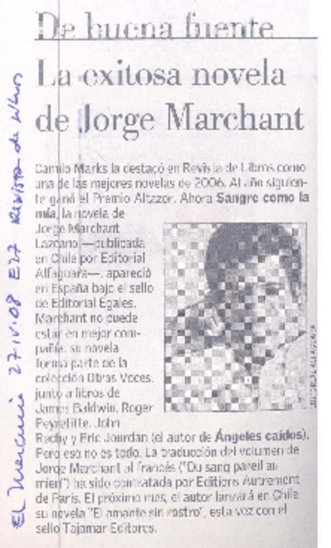 Sangre como la mía, de Jorge Marchant Lazcano. [artículo]