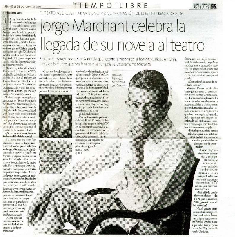 Jorge Marchant celebra la llegada de su novela al teatro [artículo] Marietta Santì.