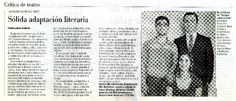 Adaptan al teatro premiada novela sobre homosexualidad [artículo] Rodrigo Alvarado.