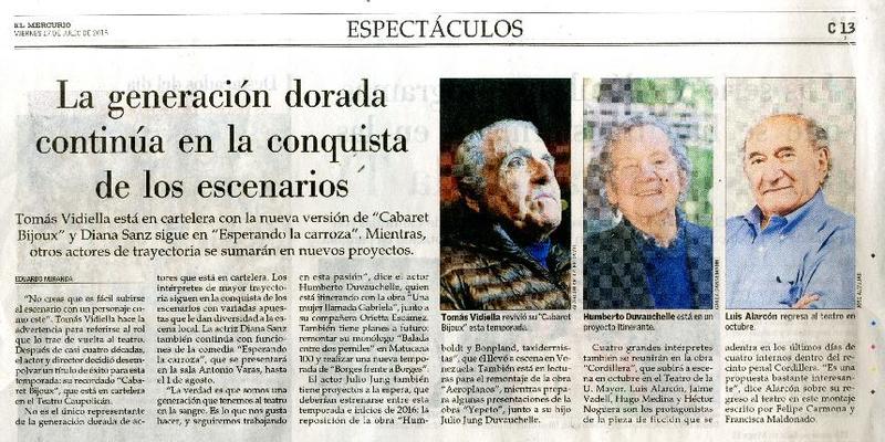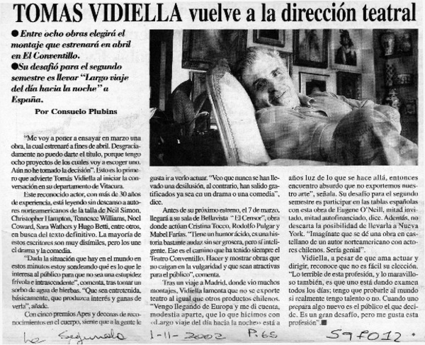 Tomás Vidiella vuelve a la dirección teatral [artículo] Consuelo Plubins