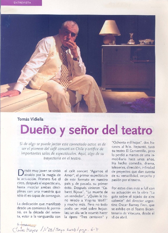 Tomás Vidiella: "Es un alivio no ser dueño de un teatro" [artículo] Ximena Veas G.
