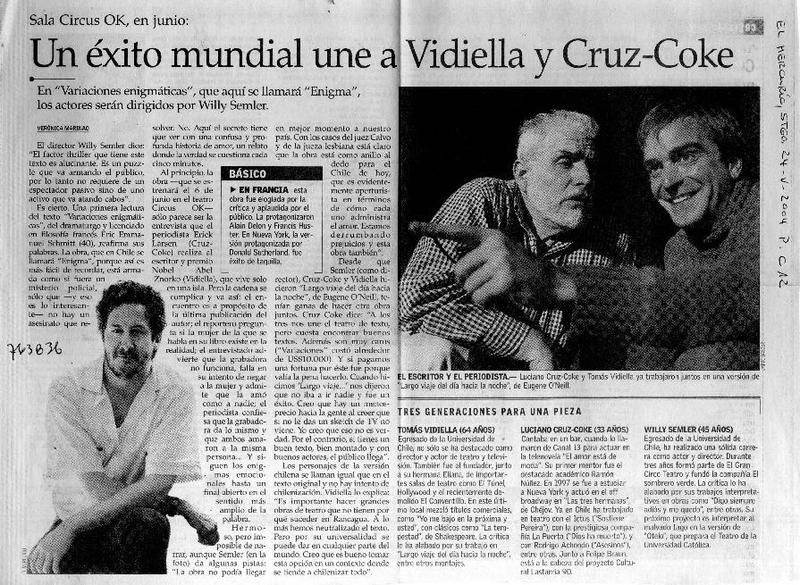 Un éxito mundial une a Vidiella y Cruz-Coke [artículo] Verónica Marinao.