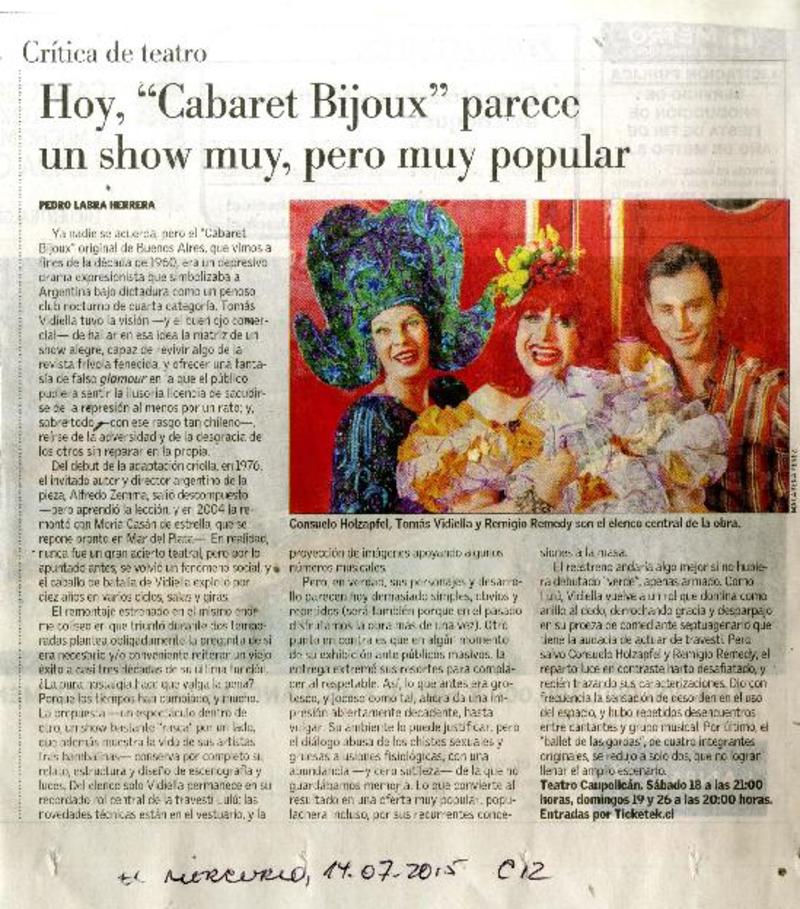 Hoy, "Cabaret Bijoux" parece un show muy, pero muy popular [artículo] Pedro Labra Herrera.