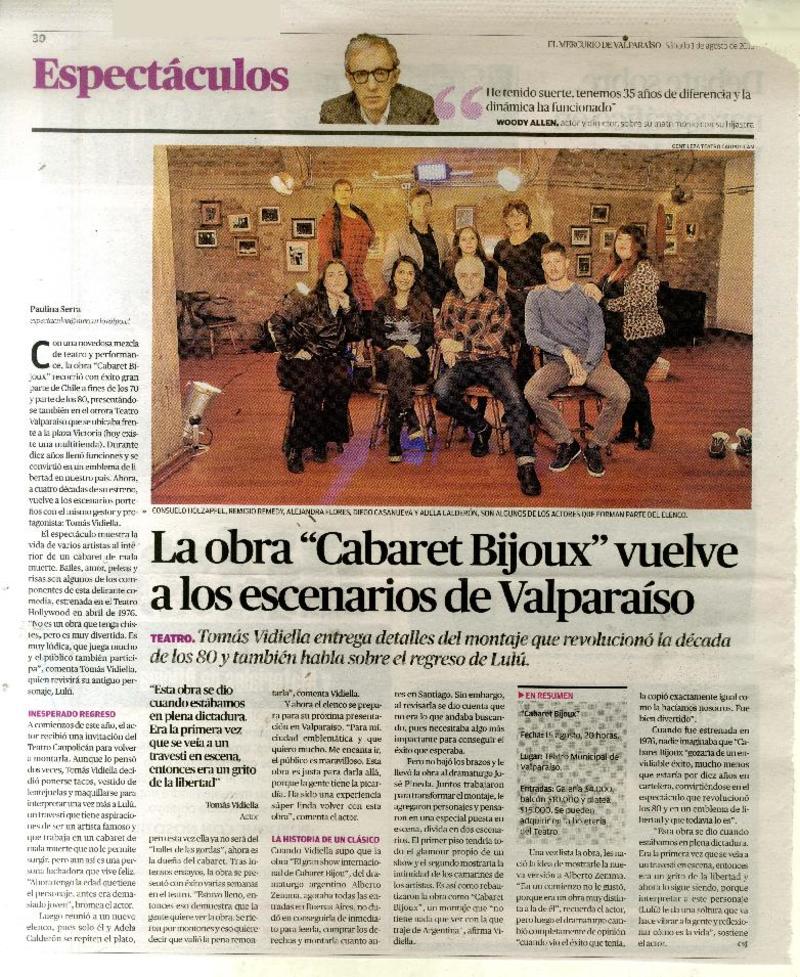 La obra "Cabaret Bijoux" vuelve a los escenarios de Valparaíso [artículo] Paulina Serra.