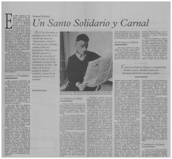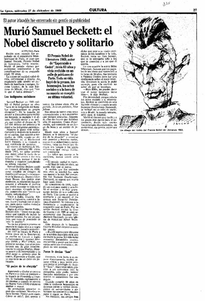 Murió Samuel Beckett: el Nobel discreto y solitario. [artículo]