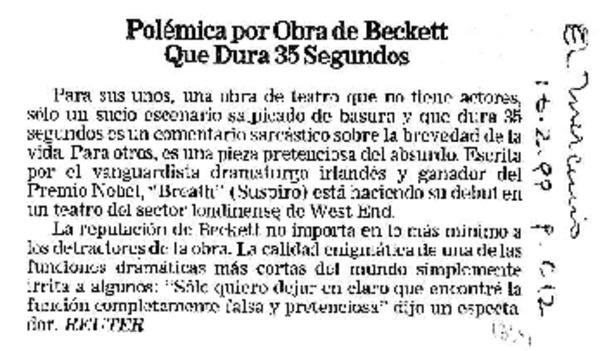 Pelémica por obra de Beckett que dura 35 segundos. [artículo]
