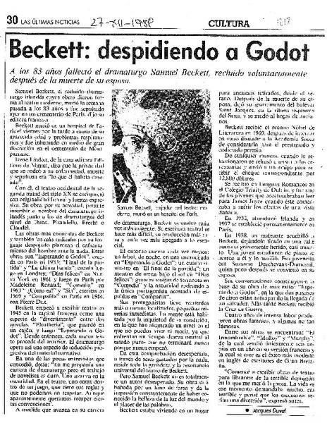 Beckett: despidiendo a Godot [artículo] Jacques Duval.