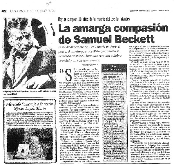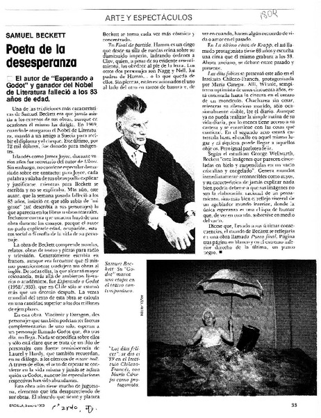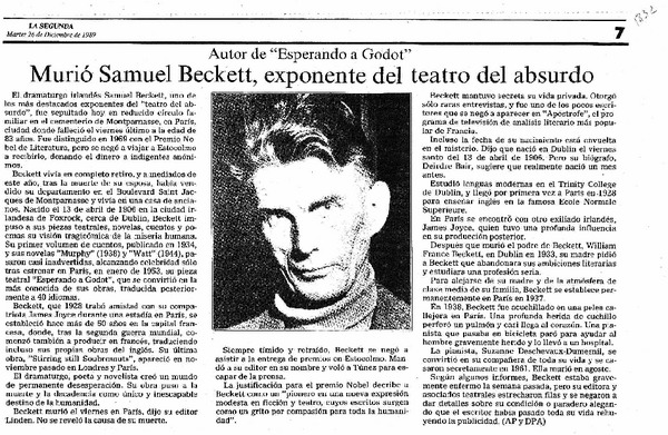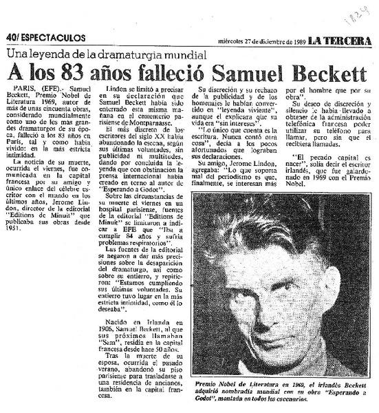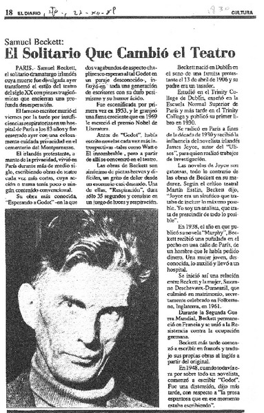 Murió Samuel Beckett, exponente del teatro del absurdo. [artículo]