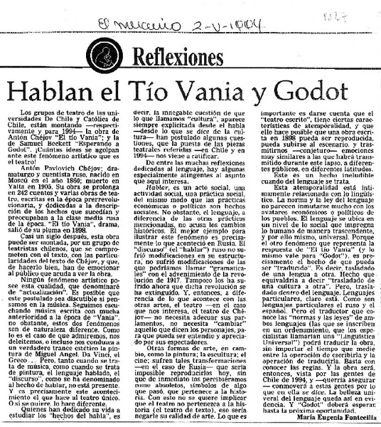 Hablan el tío Vania y Godot [artículo] María Eugenia Fontecilla.