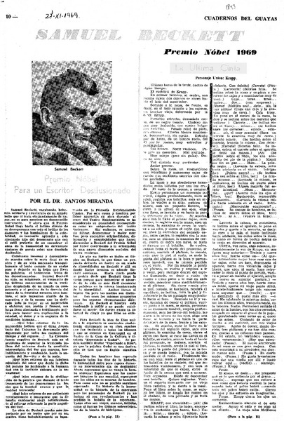 Premio Nóbel para un escritor desilusionado [artículo] Santos Miranda.