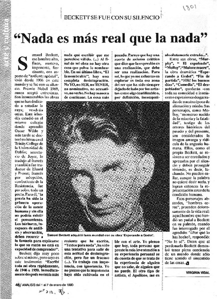Nada es más real que la nada" [artículo] Virginia Vidal.