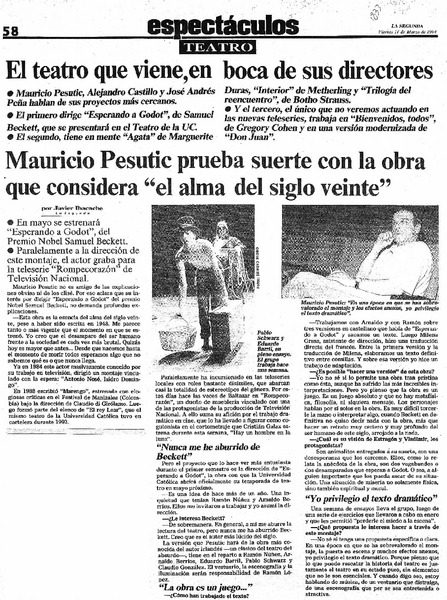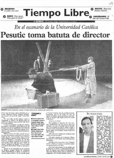 Esperando a Godot - Beckett, Samuel - Pesutic, Mauricio - Entrevistas - Autores chilenos - AUTORES IRLANDESES