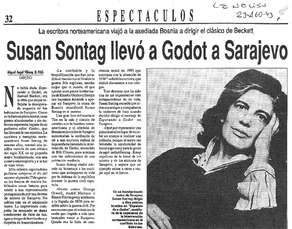 Susan Sontag llevó a Godot a Sarajevo [artículo] Miguel Angel Viellna.