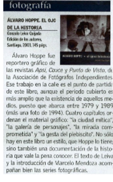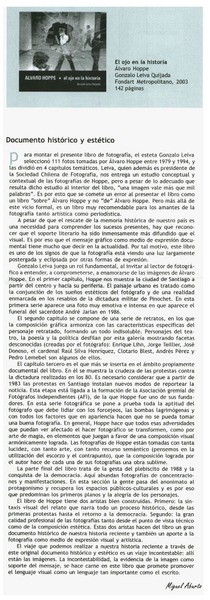 Alvaro Hoppe. El ojo de la historia [artículo] Rodrigo Pinto.