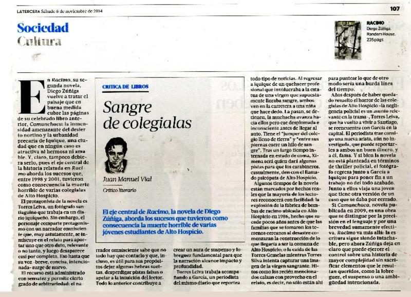 Sangre de colegialas [artículo] Juan Manuel Vial