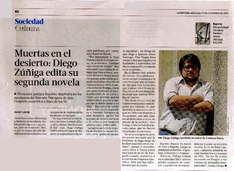 Muertas en el desierto: Diego Zuñiga edita su segunda novela [artículo] Javier García